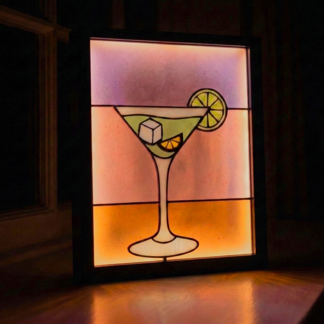 Apportez une touche de fraîcheur et de modernité à votre intérieur avec le vitrail "Martini Lime". Cette œuvre unique fusionne le savoir-faire traditionnel avec une esthétique minimaliste et pétillante.