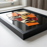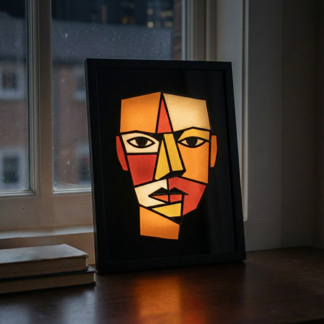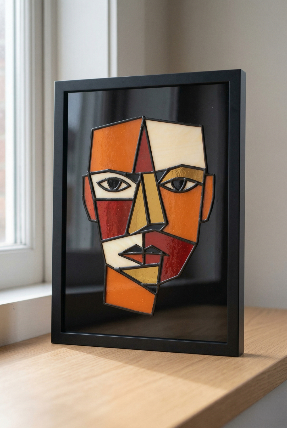 Apportez une touche de modernité vibrante à votre intérieur avec le portrait "Carmin & Ivoire". Cette œuvre unique fusionne le savoir-faire traditionnel du vitrail avec une esthétique graphique et audacieuse. Réalisée par un jeune artiste émergent, cette pièce joue sur les contrastes de rouge carmin, d'orangé et d'ivoire pour donner vie à un visage aux lignes déstructurées et captivantes.